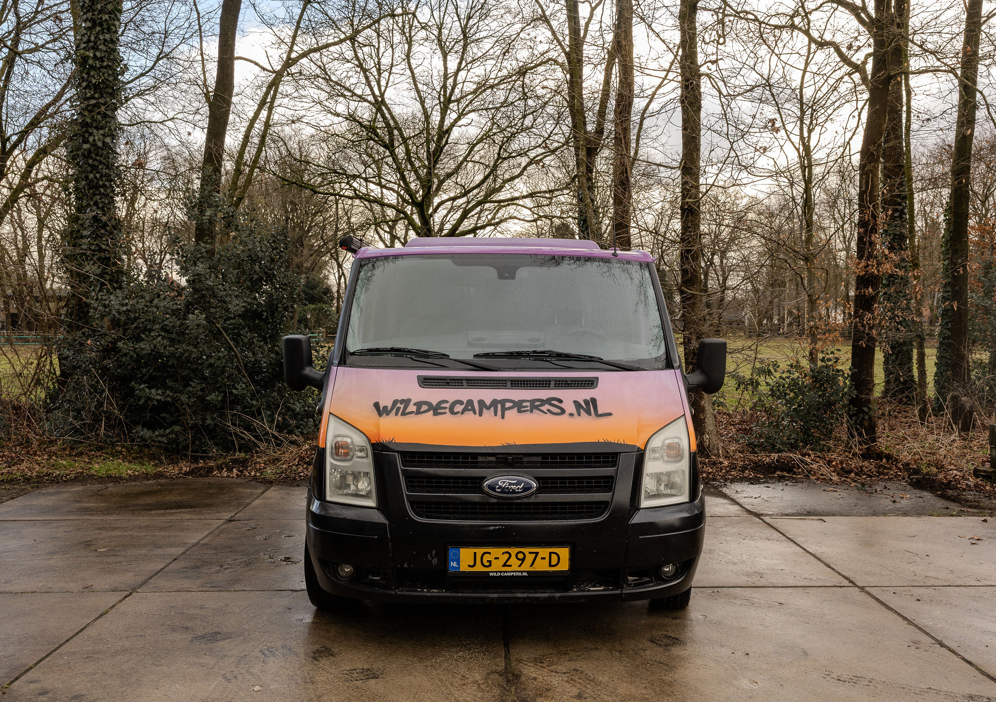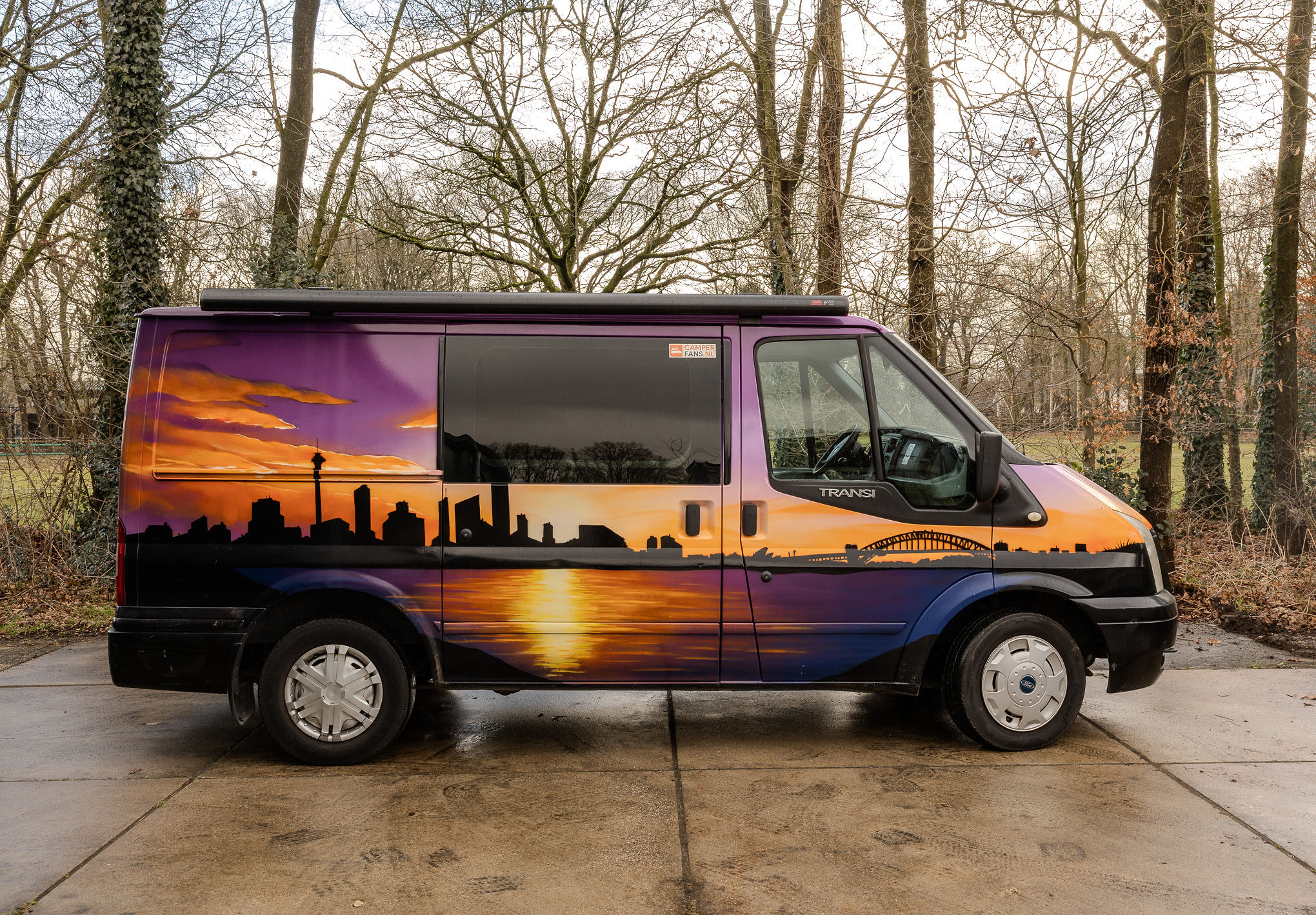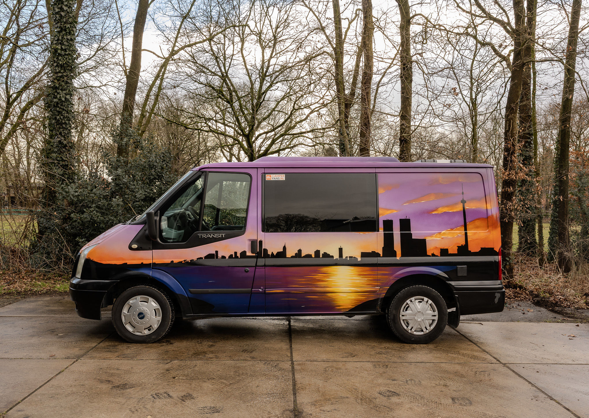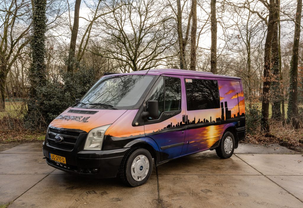 De camper Skyline is een gezellige 2-persoons bus met een herkenbaar thema. Het interieur is slim benut met een comfortabel Queen size bed en een handige opklapbare tafel. De buitenkeuken bevindt zich onder de achterklep; hierdoor kook je heerlijk in de open lucht, terwijl je bij een spatje regen toch droog staat onder de klep.