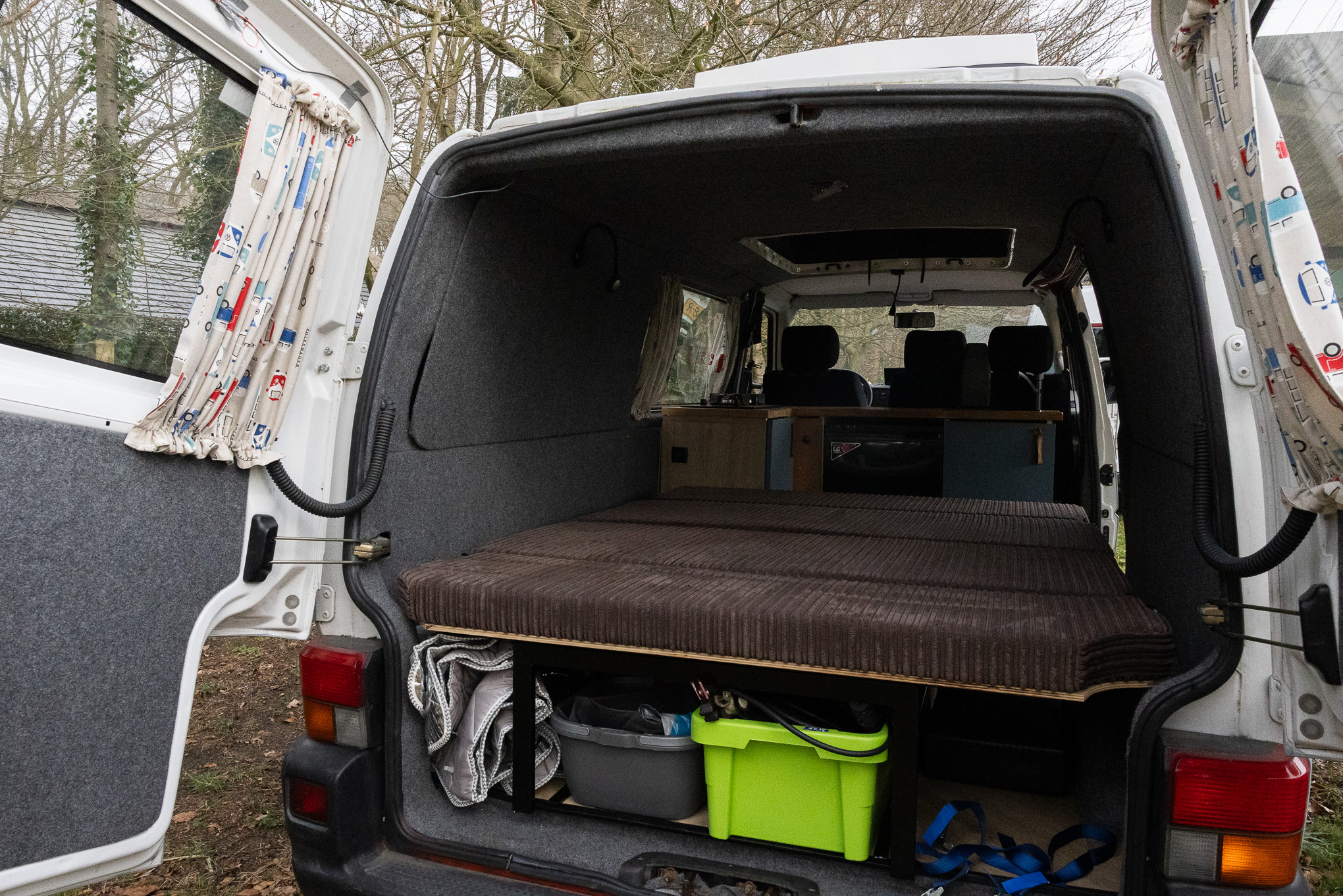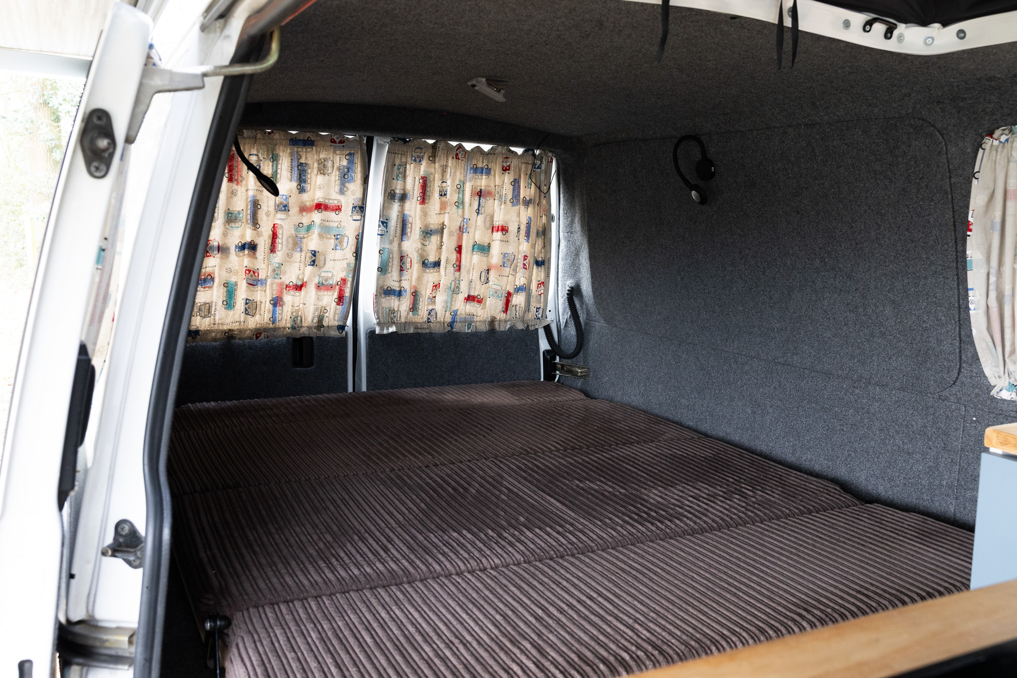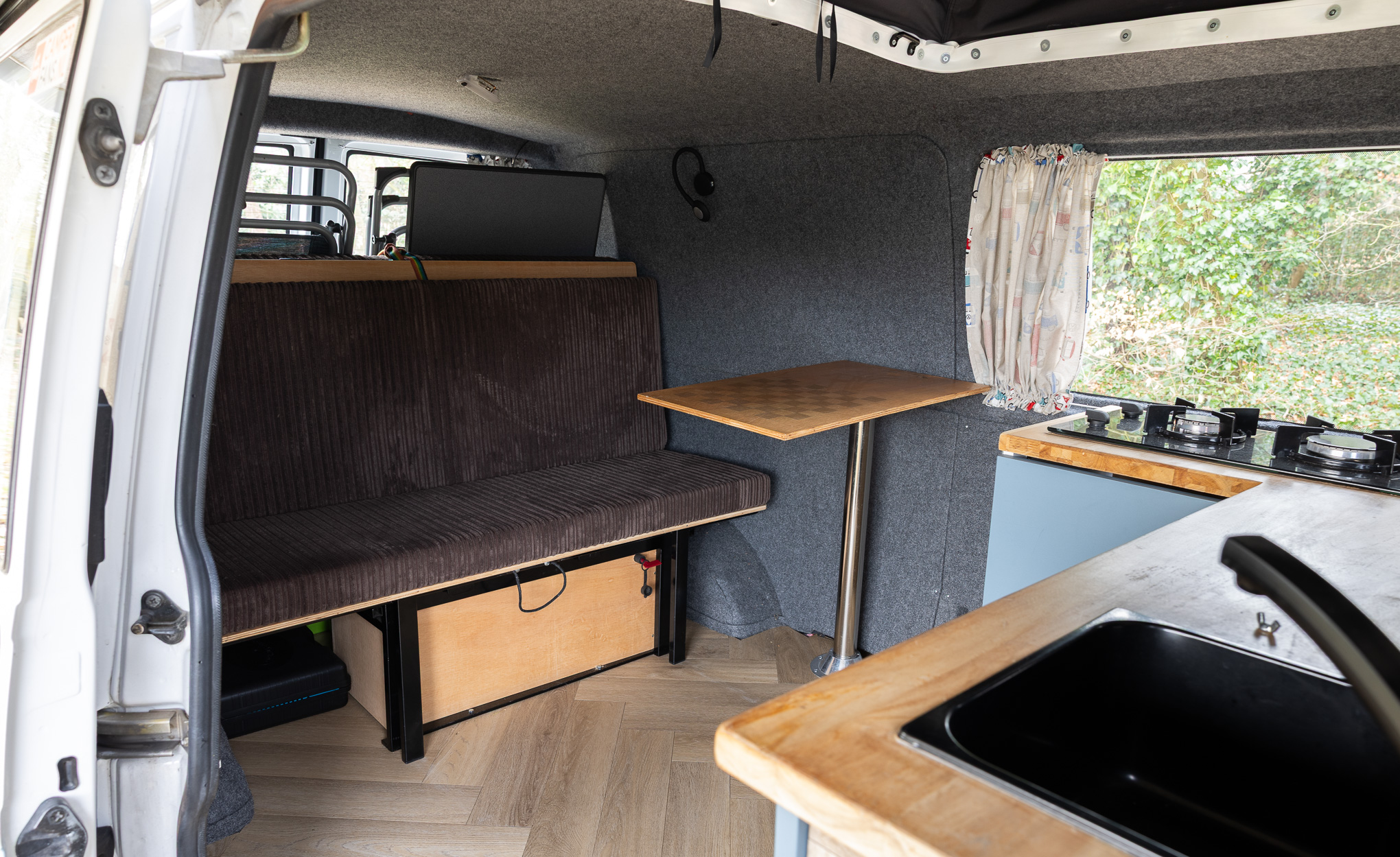 De camper Surfer is perfect voor avonturiers die houden van vrijheid. Het interieur is slim ingericht met een comfortabel Queen size bed, een handige opklapbare tafel en volop ruimte voor al je (surf)spullen. Koken doe je heel praktisch onder de achterklep; met de twee losse kookplaatjes sta je lekker buiten, maar sta je bij een buitje toch droog.